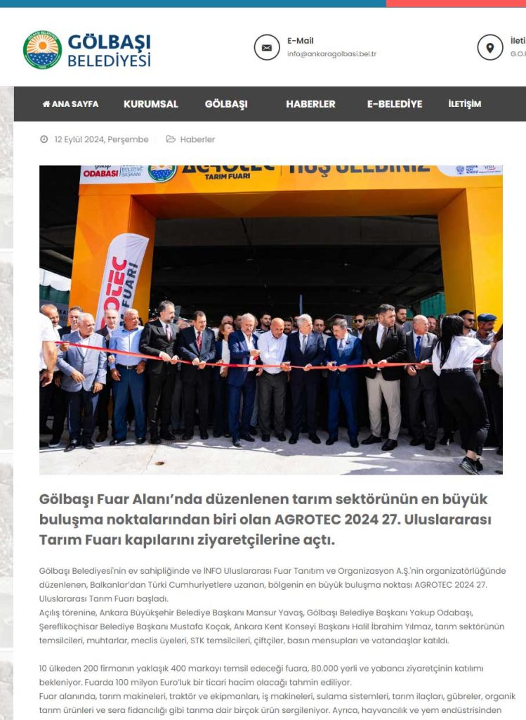 Gölbaşı Belediyesi – Agrotec 2024 27. Uluslararası Tarım Fuarı Başladı